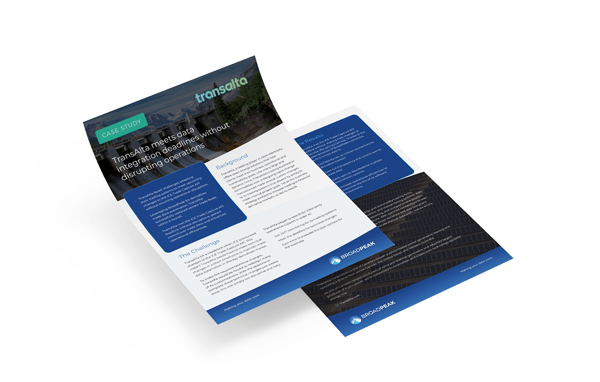 TransAlta had made several custom changes to its trading systems that slowed its ability to meet internal project goals. With BroadPeak, TransAlta met the ICE Trade Capture API deadline without making risky changes or otherwise disrupting business.